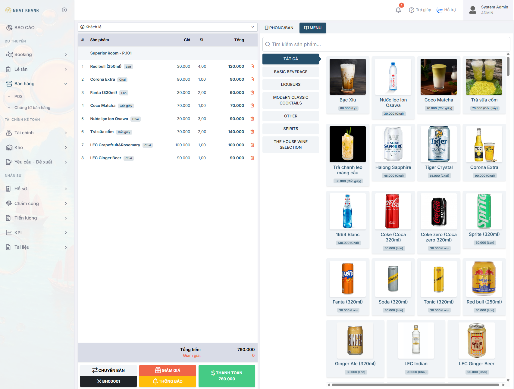 - Phân hệ POS: Bán hàng phát sinh, đồ uống, dịch vụ tàu