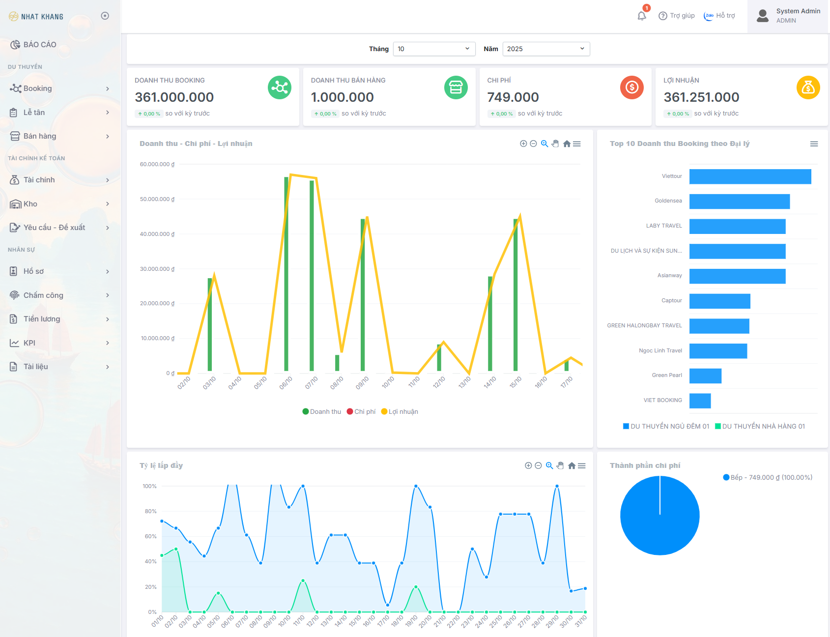 Theo dõi tỷ lệ lấp đầy (Occupancy Rate), doanh thu và chi phí theo từng chuyến hoặc theo tháng.