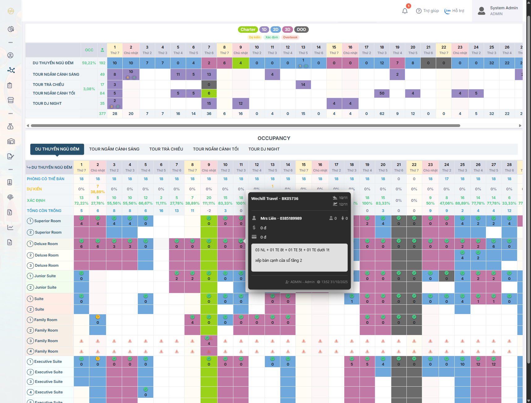 Kiểm soát phòng trống, tránh overbooking, quản lý dịch vụ đi kèm như F&B, tour, spa.